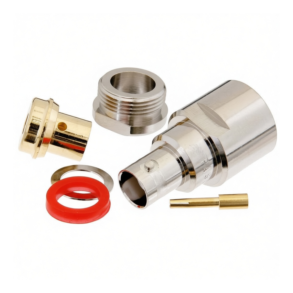 This BNC female connector features a durable brass construction designed for reliable signal transmission in demanding environments. Rated for 300V and 2A, it utilizes a solder-center-pin assembly method to ensure secure electrical contact with semi-rigid coaxial cables such as RG401, PE-SR401AL, and PE-SR401FL. The integrated strain relief clamp provides robust mechanical support, minimizing stress on the cable junction during installation and operation. Ideal for precision RF applications, this component delivers consistent performance while maintaining strict impedance control across high-frequency systems.
