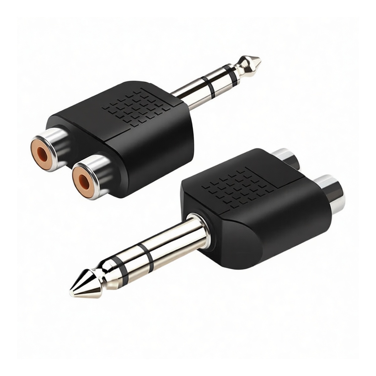 This copper audio adapter facilitates reliable signal transmission between professional instruments and mixing equipment by converting a single 0.25-inch TS jack to dual RCA female connectors. Constructed with high-conductivity copper contacts, the unit ensures minimal signal loss and consistent audio fidelity for guitar amplifiers, tuners, and studio monitors. The robust design supports standard line-level voltages suitable for most B2B audio installations. Sold in packages of ten units, these adapters provide a cost-effective solution for integrating legacy RCA inputs with modern 0.25-inch output sources across commercial sound systems.