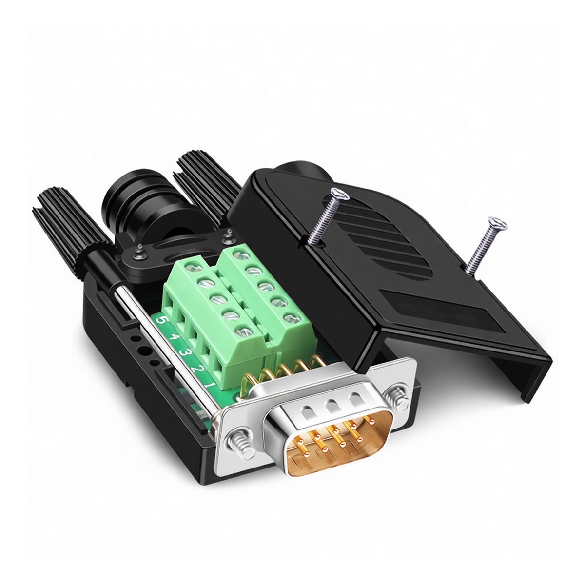 This crimp-style DB9 male connector delivers reliable serial connectivity with solid, gold-plated pins designed to minimize signal loss and resist corrosion. Rated for 300V and 5A, it ensures stable performance in demanding industrial data transmission environments. The compact, low-profile housing features a secure locking mechanism to prevent accidental disconnection under vibration. Engineered for efficiency, this tool-free design eliminates the need for soldering, significantly reducing assembly time while maintaining robust electrical contact for standard serial cable applications.