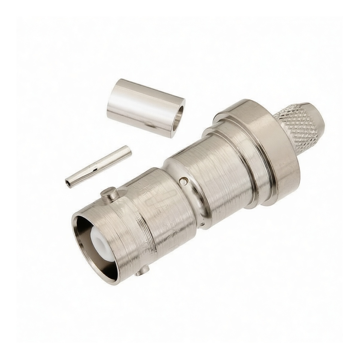 This MHV straight female connector provides a reliable interface for RG59 and RG62 coaxial cables in professional data environments. Constructed from high-conductivity copper, the unit supports voltage ratings up to 50V and current capacity of 1A, ensuring stable signal transmission. Designed for versatile installation, it accommodates both crimp and solder attachment methods to suit specific assembly requirements. The robust build maintains consistent impedance matching, making it an essential component for secure, low-loss connections in testing and instrumentation applications requiring durable, precision-engineered hardware.