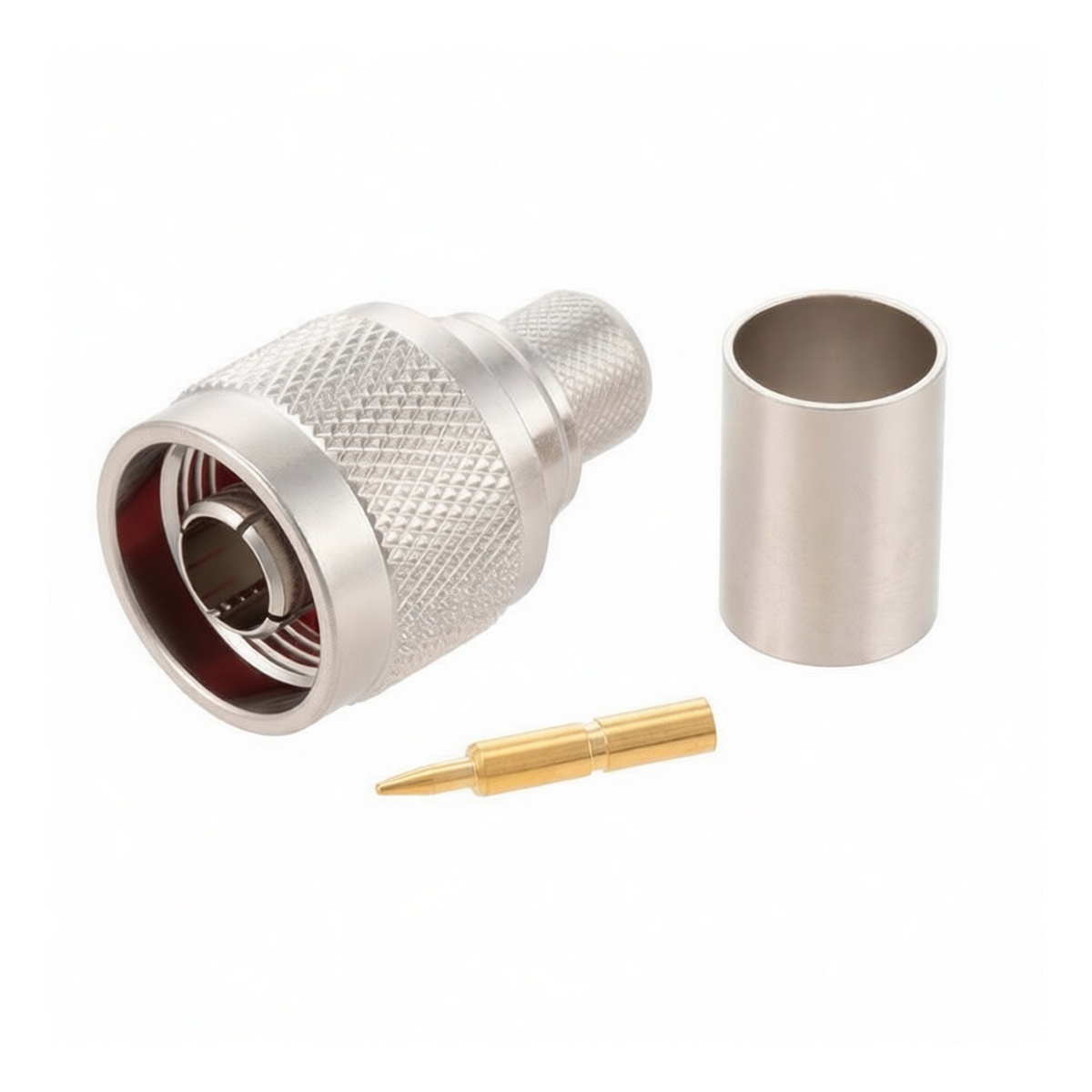 This N-type male RF connector features a robust copper construction designed for high-performance signal transmission in demanding environments. Rated for 300V and 2A, it ensures reliable electrical continuity while supporting both crimp and solder attachment methods for versatile installation. The unit is specifically engineered to interface seamlessly with heavy-duty coaxial cables, including RG214, RG9, RG225, and RG393 series. Its straight configuration facilitates direct line connections, making it an ideal component for industrial communication systems requiring durable, low-loss impedance matching without compromising structural integrity.