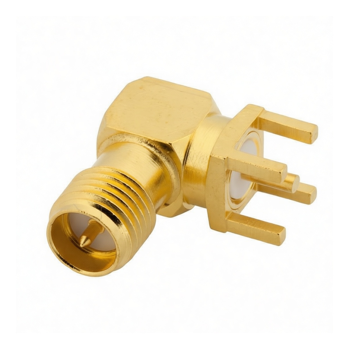 SMA Reverse Polarity Female Right Angle Brass PCB Connector 0.2in Hole Spacing