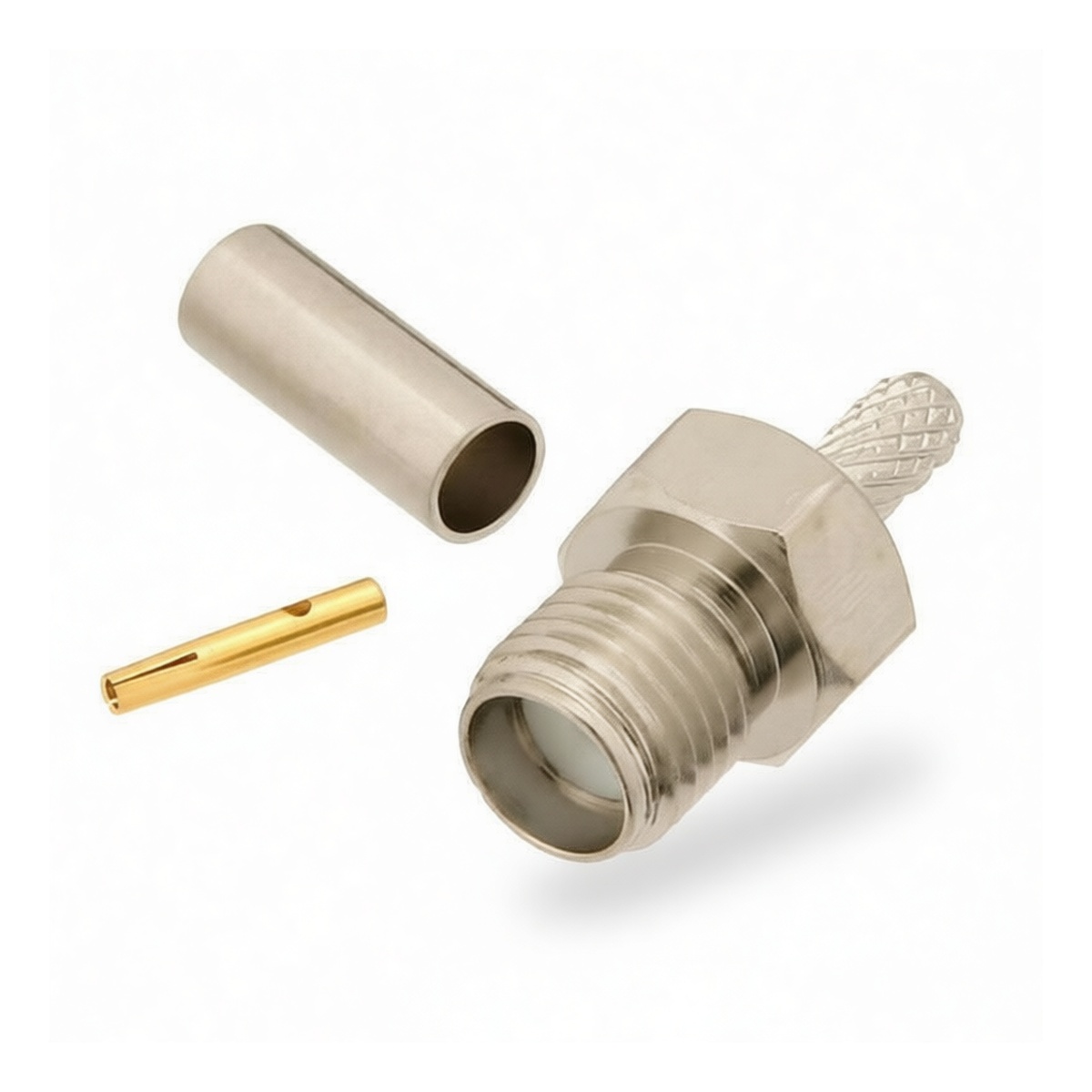 This SMA reverse thread female connector is engineered for reliable signal transmission in demanding RF applications. Constructed from durable brass, it supports a voltage rating of 50V and a current capacity of 1A, ensuring stable performance under standard operating conditions. Designed specifically for press or solder attachment, this unit accommodates common coaxial cables including RG174, RG316, and RG188 varieties. Its compact form factor facilitates easy integration into tight assembly spaces while maintaining robust mechanical integrity. Ideal for telecommunications and test equipment setups requiring secure, low-loss connections with reversed polarity configurations.