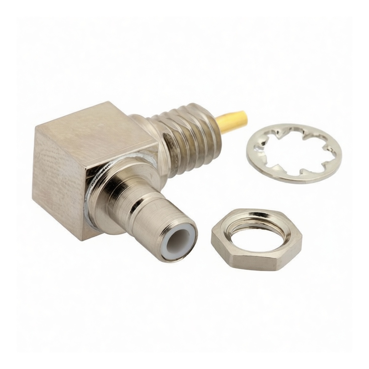 SMB Right Angle Bulkhead Jack, Copper, 0.177in D-Hole, 50V, for Coaxial
