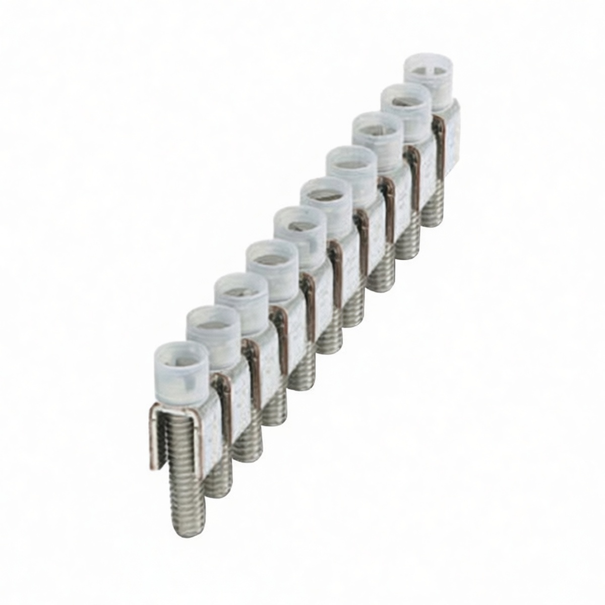 This fixed bridge jumper provides a reliable 10-position interconnection solution for flat cable terminal blocks, constructed from high-conductivity copper alloy to ensure optimal electrical performance and mechanical stability. Designed for seamless integration within industrial control panels, the component facilitates efficient potential distribution across adjacent connection points without requiring external wiring. Its robust build supports demanding operational environments, offering a durable alternative to manual jumpers while maintaining consistent contact pressure. Supplied in packages of 25 units, this accessory streamlines inventory management and installation workflows for large-scale electrical assembly projects.