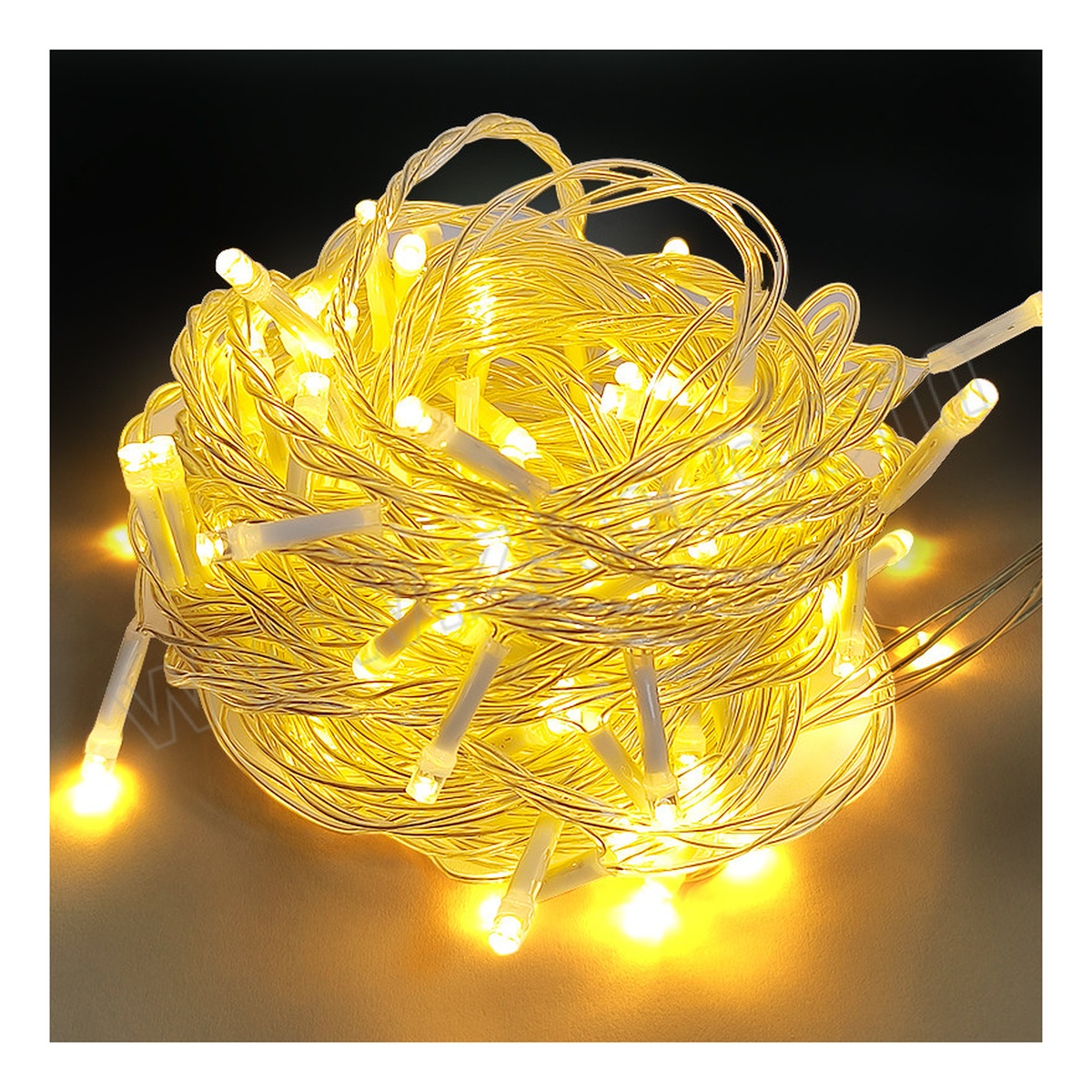 LED String Light 33ft 100-Bulb Yellow Clear Wire 6W 120V IP44, Pkg Qty 12