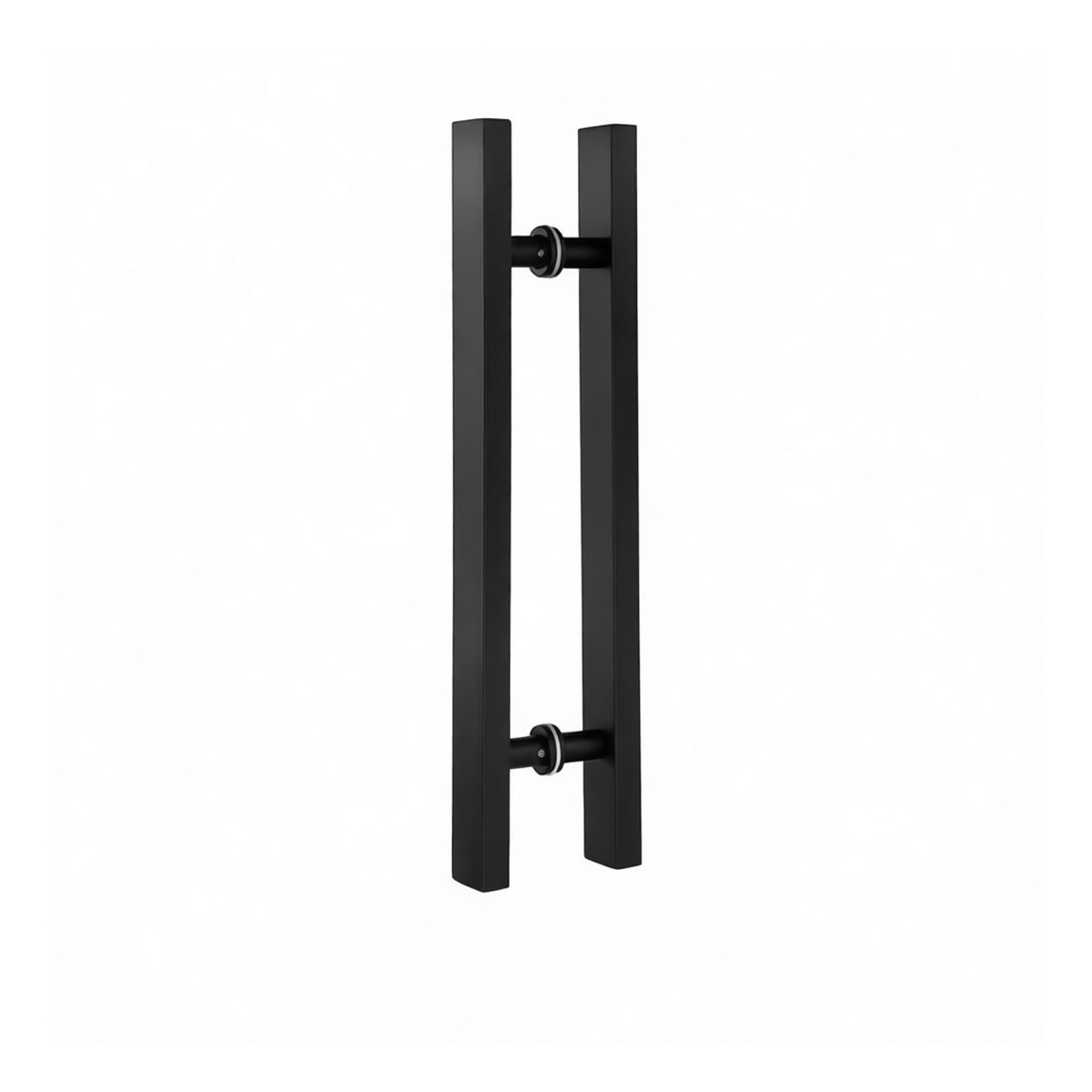 This heavy-duty stainless steel glass door handle is engineered for commercial and institutional applications requiring robust, reliable hardware. Its substantial rectangular profile provides a secure and comfortable grip for high-traffic entryways. Constructed from corrosion-resistant stainless steel and finished with a durable matte black PVD coating, this handle combines exceptional strength with a sophisticated, modern appearance designed to withstand constant use.