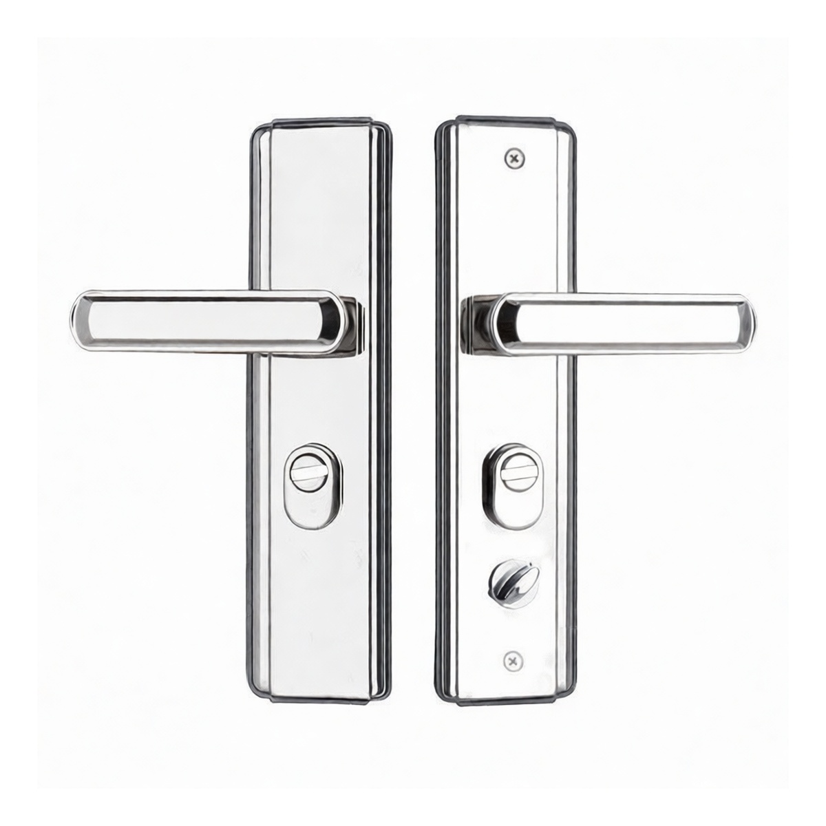 This pair of 201 stainless steel security door handles is engineered for demanding commercial and industrial entry points. Designed to replace standard lever sets or knobs, this hardware provides enhanced security and durability for storage rooms, utility closets, mechanical rooms, and secondary access doors. The robust construction and corrosion-resistant material ensure long-term reliability in high-traffic environments, while the simple, tool-operated design allows for controlled access without the complexity of keyed systems.
