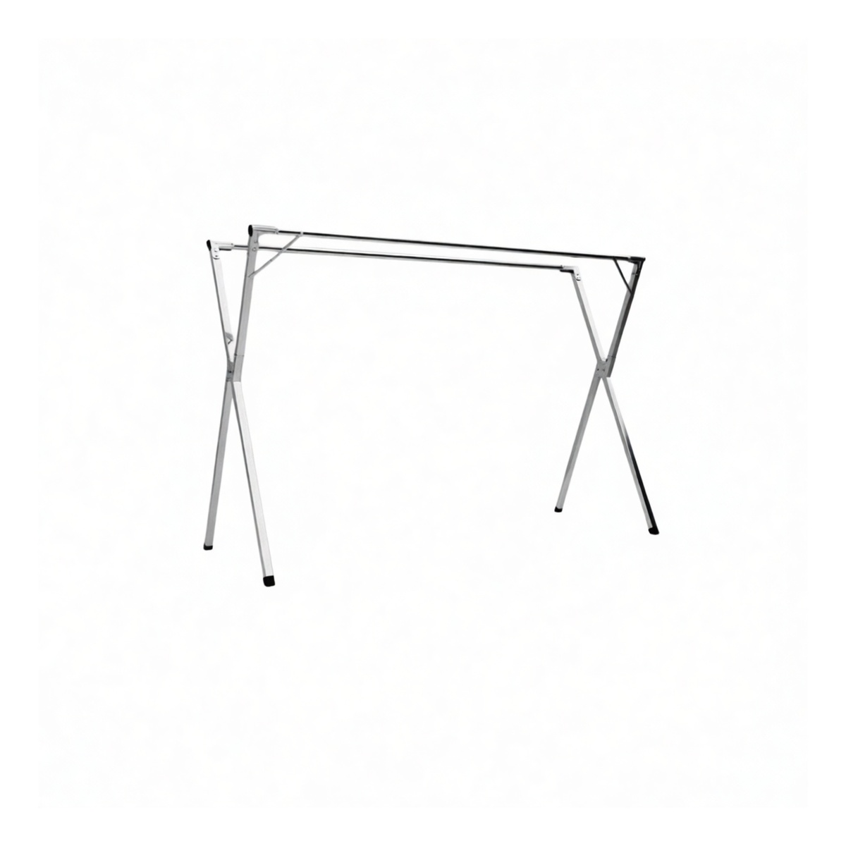 Dual parallel rails provide extensive linear hanging space Corrosion-resistant finish for longevity in high-humidity areas Easy-to-clean, sanitary surface compliant with institutional standards Sturdy, stable base design prevents tipping under full load Simple, tool-free assembly for quick deployment Compact footprint maximizes utility in space-constrained rooms