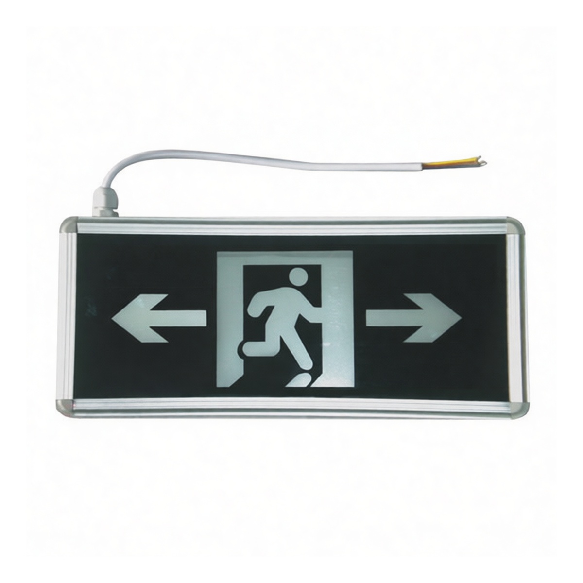 This single-face directional exit sign features a high-visibility green arrow designed for clear emergency egress guidance. Powered by a 3-watt LED module delivering 150 lumens at 6500K, the unit operates on a 220-volt supply to ensure consistent illumination. An integrated battery backup provides 90 minutes of critical operation during power failures, maintaining compliance with safety standards. The compact, single-sided housing facilitates straightforward installation in corridors and stairwells where unidirectional traffic flow requires precise path indication without visual clutter.