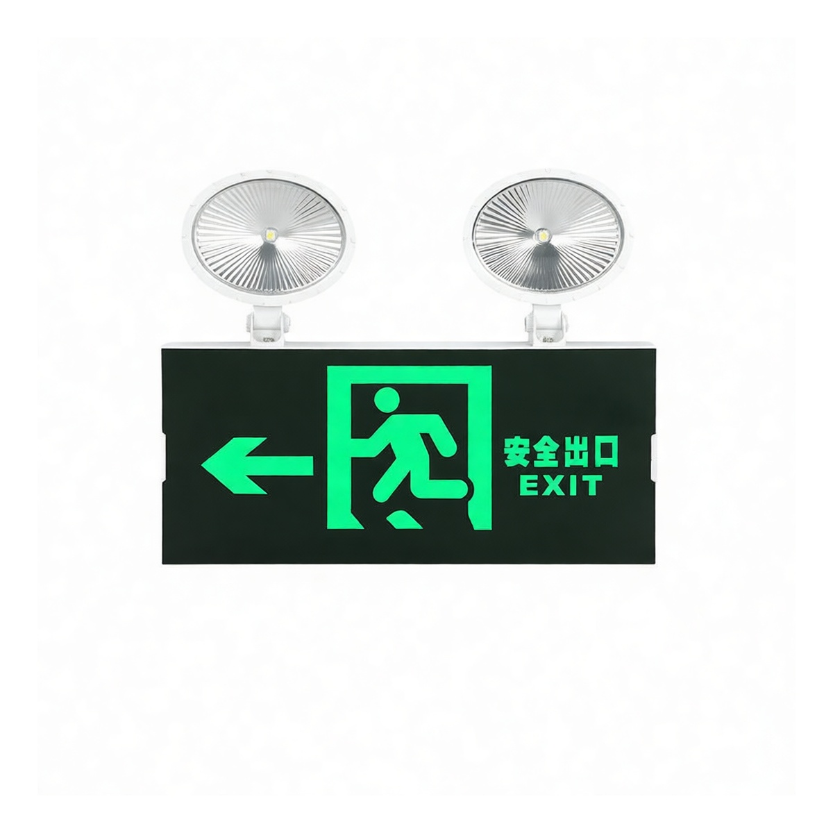 This single-face illuminated exit sign features a durable metal housing and a clear left-pointing arrow to ensure precise emergency egress guidance. Designed for direct AC220V operation, the 12-watt LED module delivers high-visibility performance while maintaining energy efficiency. The unit includes an integrated plug for rapid installation without hardwiring, reducing labor costs during large-scale deployments. Engineered for commercial safety compliance, this robust fixture provides reliable operation in demanding environments. Sold in bulk packages of 100 units, it is optimized for facility managers overseeing extensive property portfolios requiring standardized safety signage.