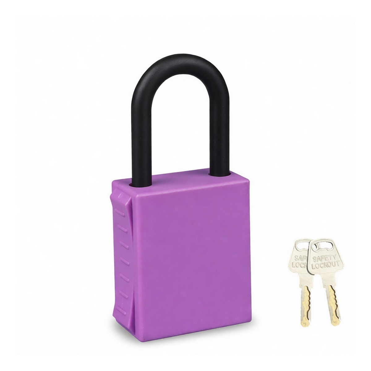 This insulated plastic lockout padlock is engineered for electrical safety in hazardous energy control programs. Its primary function is to provide a non-conductive, physical lockout device for securing electrical isolation points during maintenance and servicing, helping to protect personnel from accidental re-energization. The lock is keyed different, ensuring individual accountability and control in group lockout scenarios.