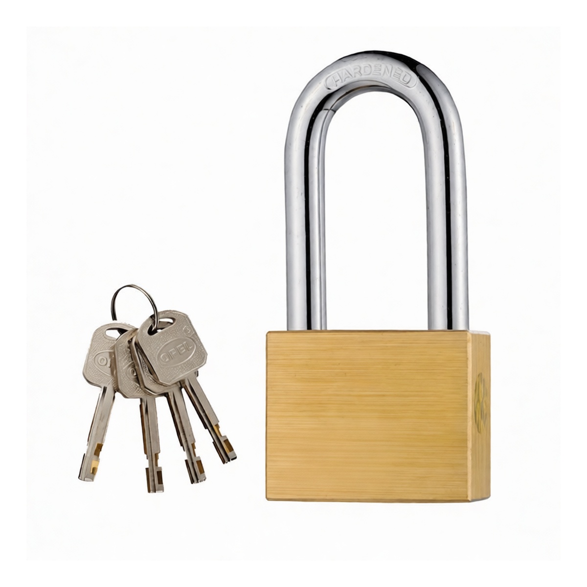 Features a protective brass finish for enhanced weatherproofing 2-inch wide lock body provides substantial strength and resistance to physical attacks Hardened steel shackle offers a 2-inch clearance to fit a wide variety of hasps and chains Reliable four-pin tumbler cylinder ensures smooth operation and key retention Each lock is keyed independently (non-interchangeable) for distinct, controlled access