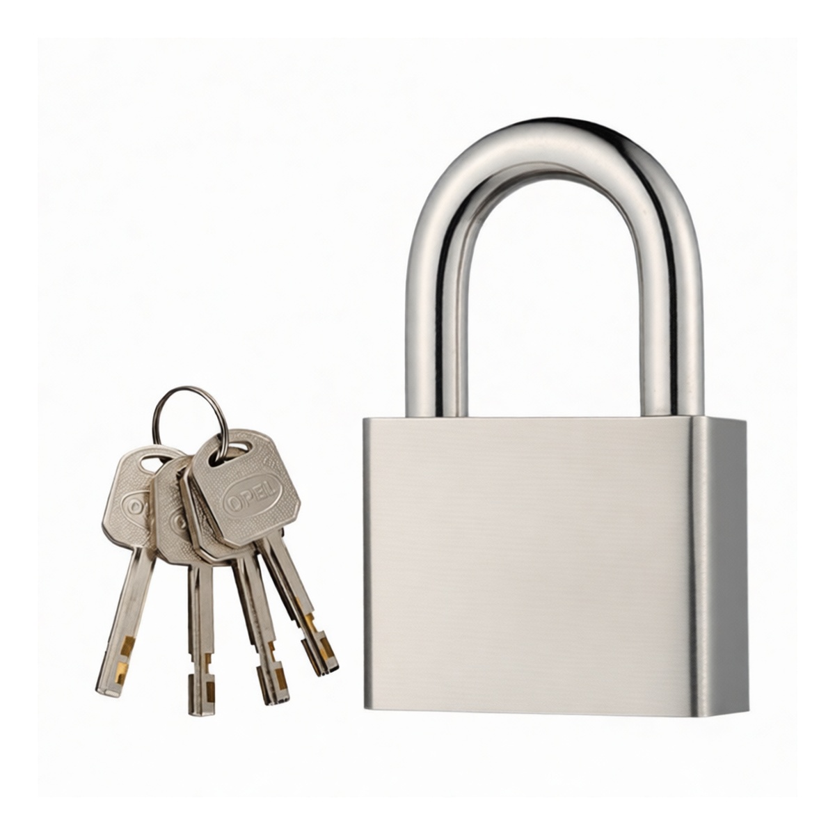 Constructed from durable 304-grade stainless steel for maximum corrosion resistance. Features a high-security disc detainer cylinder mechanism, offering superior pick resistance compared to standard pin tumbler designs. Non-interchangeable keyway system ensures keys cannot operate other locks, providing controlled and exclusive access. Includes four identical keys for convenient access management. Natural stainless steel finish provides a clean, professional appearance that maintains its look over time. Compact and robust lock body design for integration into various securing applications.