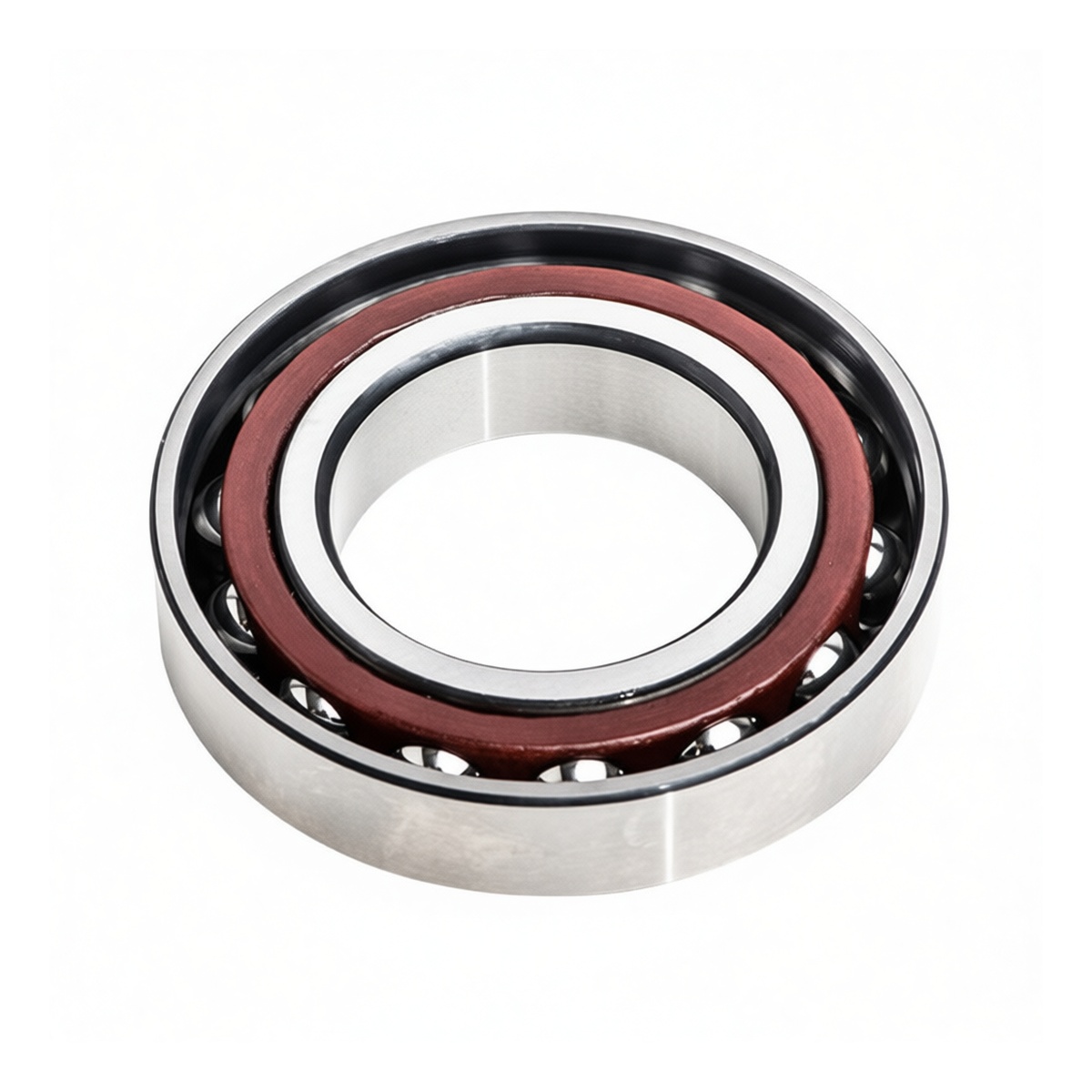 This steel angular contact ball bearing is engineered for high-speed industrial applications requiring precise axial and radial load support. Featuring a 2.76-inch bore diameter and a 5.91-inch outside diameter, the unit measures 1.38 inches in width to fit standard housing configurations. Constructed from durable hardened steel, it ensures exceptional rigidity and thermal stability under demanding operational conditions. The design accommodates significant combined loads while maintaining tight rotational accuracy, making it ideal for machine tool spindles, pumps, and heavy-duty gearboxes where reliability and extended service life are critical.