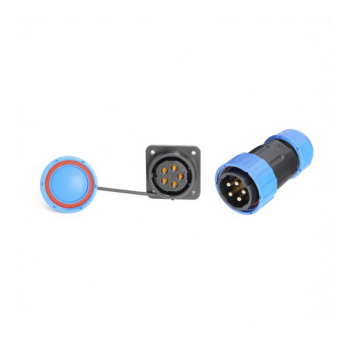 This industrial-grade 5-conductor power cable connector set features a solder-free design for rapid field assembly and maintenance. Constructed with high-purity copper contacts, the unit supports a continuous current rating of 45A and operates safely at voltages up to 380V. The robust housing achieves an IP68 ingress protection rating, ensuring reliable performance in wet or dusty environments while accommodating 8 AWG wiring. Ideal for heavy-duty portable cord applications, this male-female mating pair delivers secure, low-resistance connections without requiring specialized crimping tools or soldering equipment.