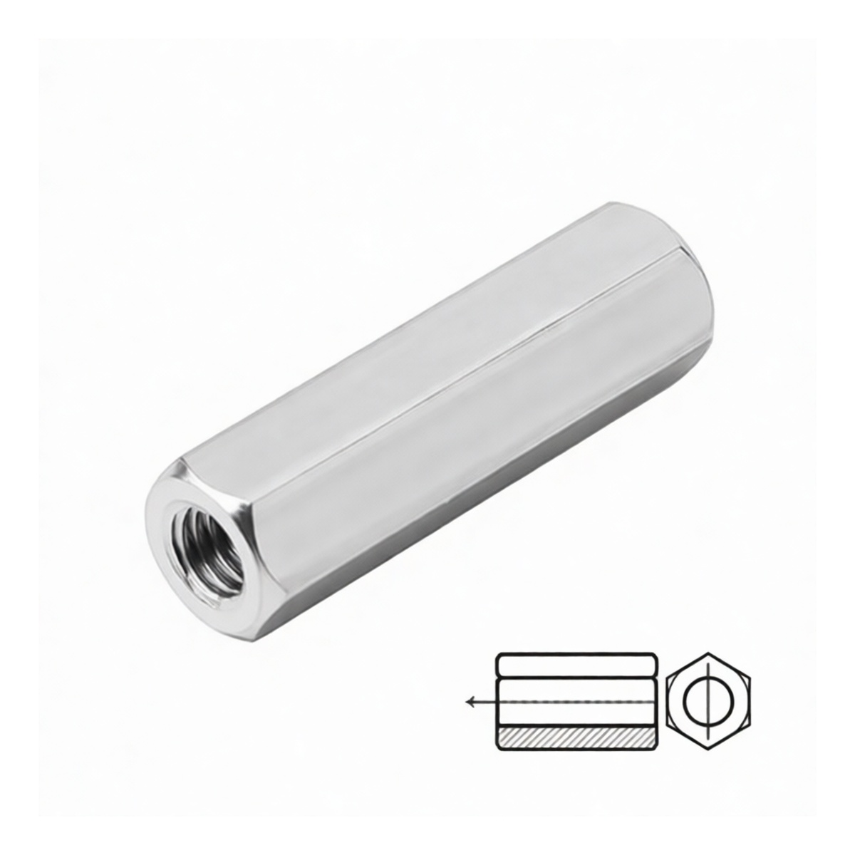Right-hand and left-hand internal thread design for joining opposing rods Constructed from durable and corrosion-resistant 304 stainless steel Meets A2-70 material strength and hardness classification Plain, uncoated finish suitable for a wide range of environmental conditions Standard hex profile for secure tool engagement and torque application Ideal for creating adjustable linkages, tensioning systems, and extending threaded assemblies