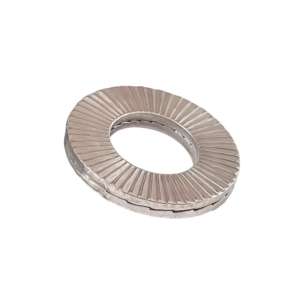 DIN 25201 compliant design for assured dimensional consistency and performance Two-part, interlocking washer construction creates a prevailing torque lock Prevents fastener loosening under severe vibration and dynamic loads Non-marring design protects the integrity of the mating surface Corrosion-resistant 304 stainless steel material for harsh environments Plain, self-color finish provides a clean, non-reflective appearance Bulk packaging of 100 units supports high-volume usage and inventory efficiency