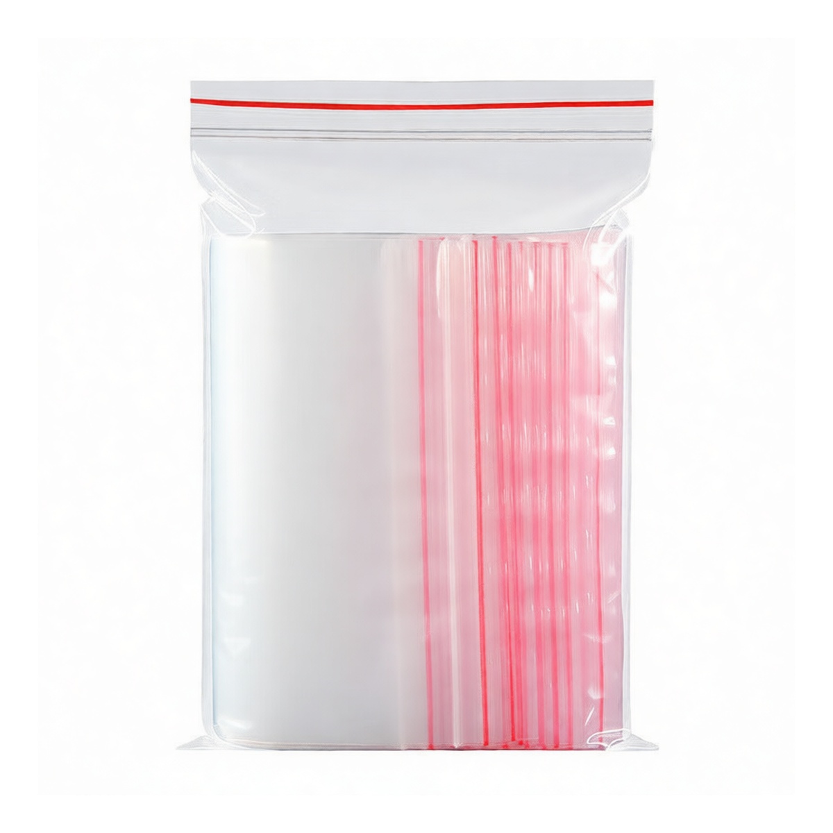 These clear polyethylene reclosable bags feature a robust 12-mil double-sided thickness and a distinctive red-striped zipper for secure, repeatable access. Measuring 5.51 inches in width by 7.87 inches in length, they utilize a short-edge opening design optimized for efficient retail packaging and parts organization. The high-density PE construction ensures superior puncture resistance and clarity for immediate content identification. Supplied in bulk quantities of 2,000 units per package, these one-size bags provide a cost-effective, durable solution for protecting small components and merchandise in demanding commercial environments.