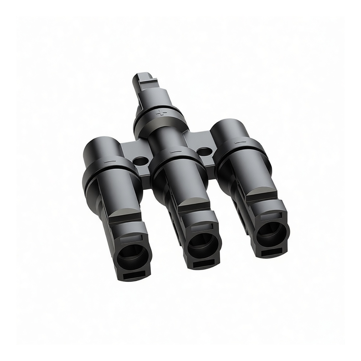 This T-type photovoltaic connector facilitates efficient solar array branching with a robust PPO housing designed for long-term outdoor durability. Rated for system voltages up to 1000V DC and continuous current loads of 50A, it ensures reliable power transmission in demanding commercial installations. The push-pull interlocking mechanism provides a secure, vibration-resistant connection that simplifies field assembly while maintaining strict electrical safety standards. Engineered to withstand extreme environmental conditions, this black-finished component delivers consistent performance for high-voltage solar infrastructure without requiring specialized tools for mating or unmating.