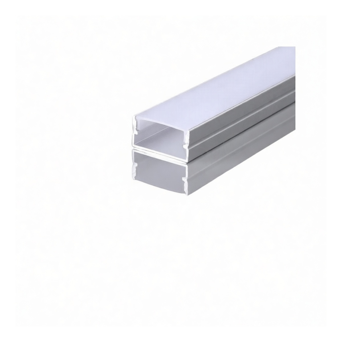 This aluminum track light channel provides a clean, modern lighting solution for commercial and retail spaces. The 12x10-inch profile features a seamless, edgeless design in silver aluminum paired with a durable white polycarbonate diffuser for even, glare-free illumination. It is compatible with standard line voltage track systems and is sold in convenient 20-piece packages. The unit is offered as a customizable one-foot channel, allowing for tailored lengths to meet specific project requirements.