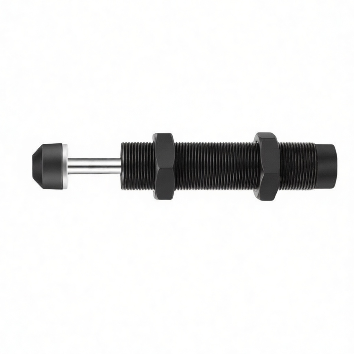 Designed for industrial hydraulic and pneumatic systems, this carbon steel shock absorber delivers reliable high-frequency damping with automatic compensation. The unit features a robust M14 x 1.5 external thread for secure mounting and provides a 0.47-inch buffer stroke to effectively manage kinetic energy. Capable of supporting loads up to 220 lbs, it includes a slow-return cap to ensure controlled extension and minimize mechanical stress. Constructed from durable carbon steel without additional finishes, this component offers consistent performance in demanding vibration isolation applications where precision and longevity are critical.