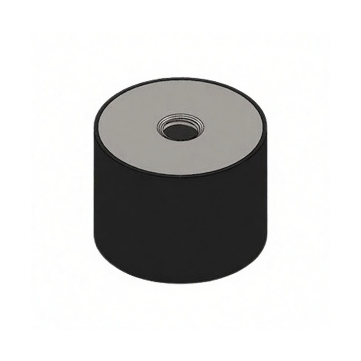 This cylindrical rubber vibration isolator features a compact 2-inch diameter by 0.79-inch height profile, engineered to support static loads up to 787 lbs with 0.16 inches of deflection. The unit incorporates a dual-end design with one flat surface and one M10 threaded hole for versatile mounting configurations in industrial machinery. Constructed from durable rubber without additional finishes, it effectively dampens mechanical oscillations and reduces noise transmission. Sold in packages of 12, these mounts provide reliable shock absorption for equipment requiring precise stability and vibration control.