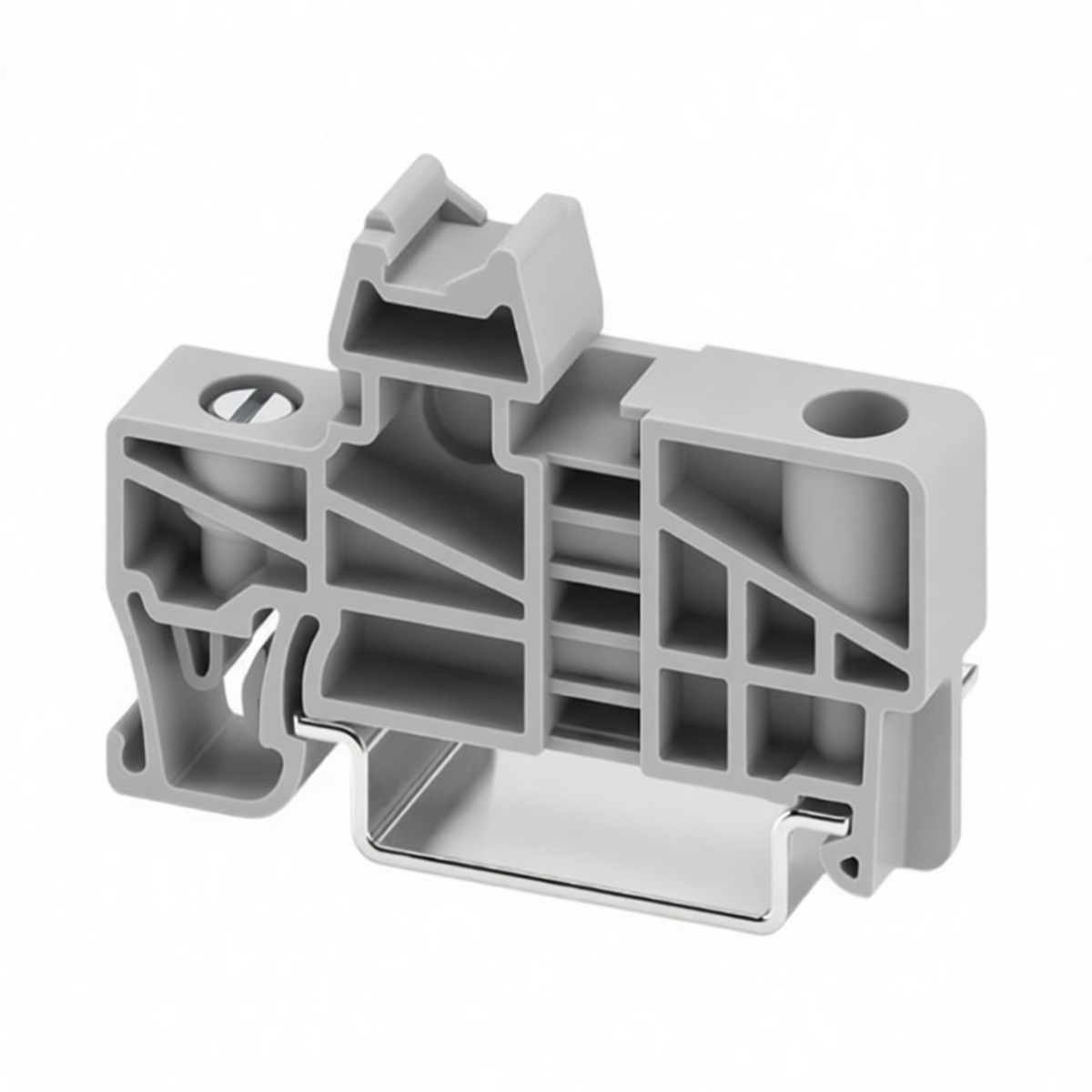 Designed for secure component retention on standard DIN rails, this polyamide end stop provides reliable mechanical stability within wireway systems. Constructed from durable polyamide, the unit measures 0.24 inches in length and offers robust resistance to environmental stressors without electrical rating constraints. Ideal for organizing control panels, these stops prevent lateral movement of terminal blocks and accessories, ensuring consistent spacing and system integrity. Supplied in packages of 500, this solution supports high-volume industrial installations requiring precise, non-conductive rail termination compatible with standard mounting profiles.